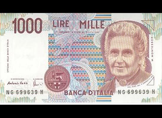 داستان تصویر اسکناس 1000 لیر 1990 (مونته‌سوری) جمهوری ایتالیا